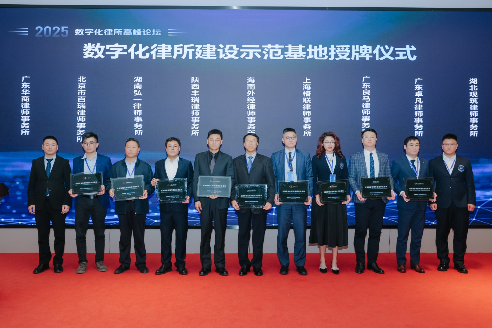 2025 年 11 月 22 日,“数智引擎・驱动未来 —2025 数字化律所高峰论坛” 在武汉圆满落幕。北京市百瑞律师事务所在本次论坛上斩获重磅荣誉,凭借在数智化建设领域的突出成果,被知律科技(金助理)、法天使、新则联合发起的 “法律科技创新实验室” 授予 “全国数智化律所建设示范基地” 称号,成为首批获此殊荣的律所之一。